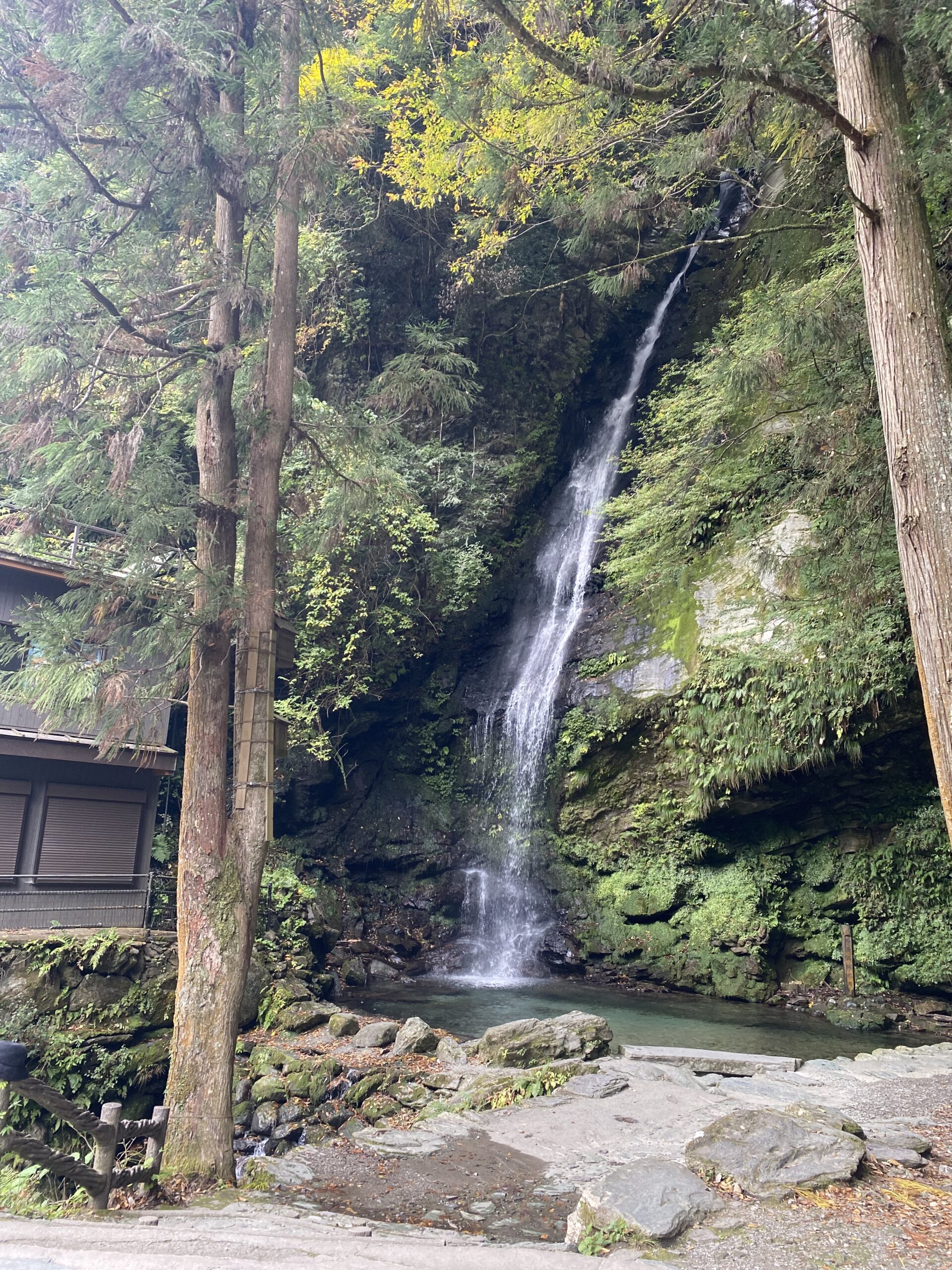 写真3:祖谷のかずら橋のそばを流れる琵琶の滝。落差は40メートル以上あるそうで、なかなか見ごたえがあります。