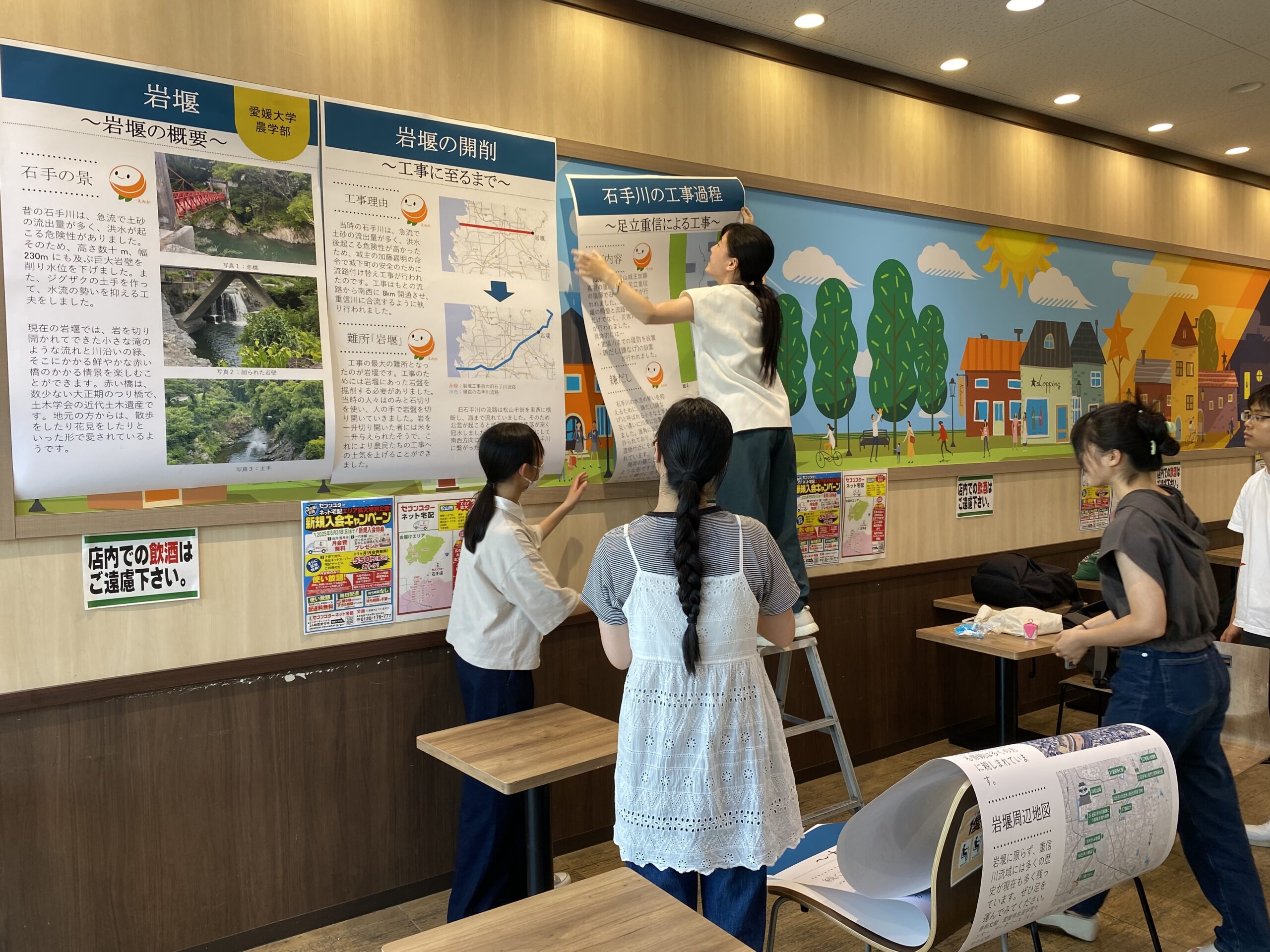 今年は石手川にある「岩堰(いわぜき)」について調べた学生が、その内容をまとめたポスターを作成し、近くの商業施設(セブンスター石手店)の誕生祭に併せて店内に掲示していただきました。