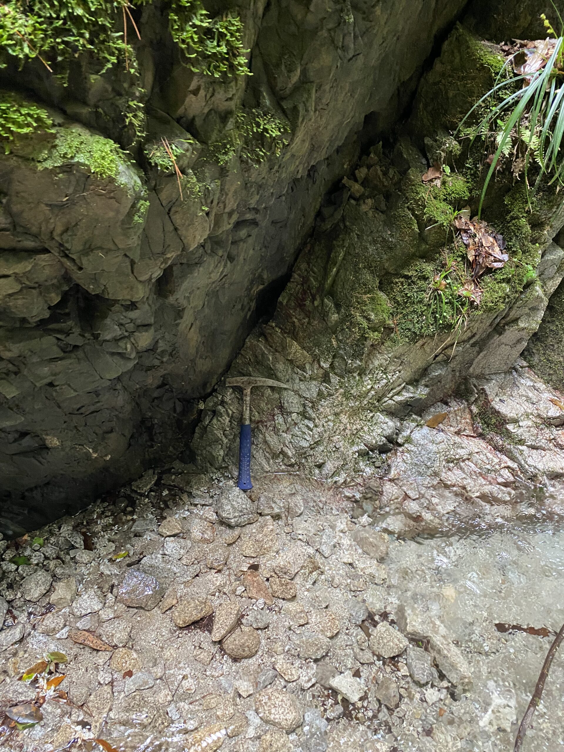 写真5(おまけ):花崗岩(右側)と安山岩(左側)の地質境界面。