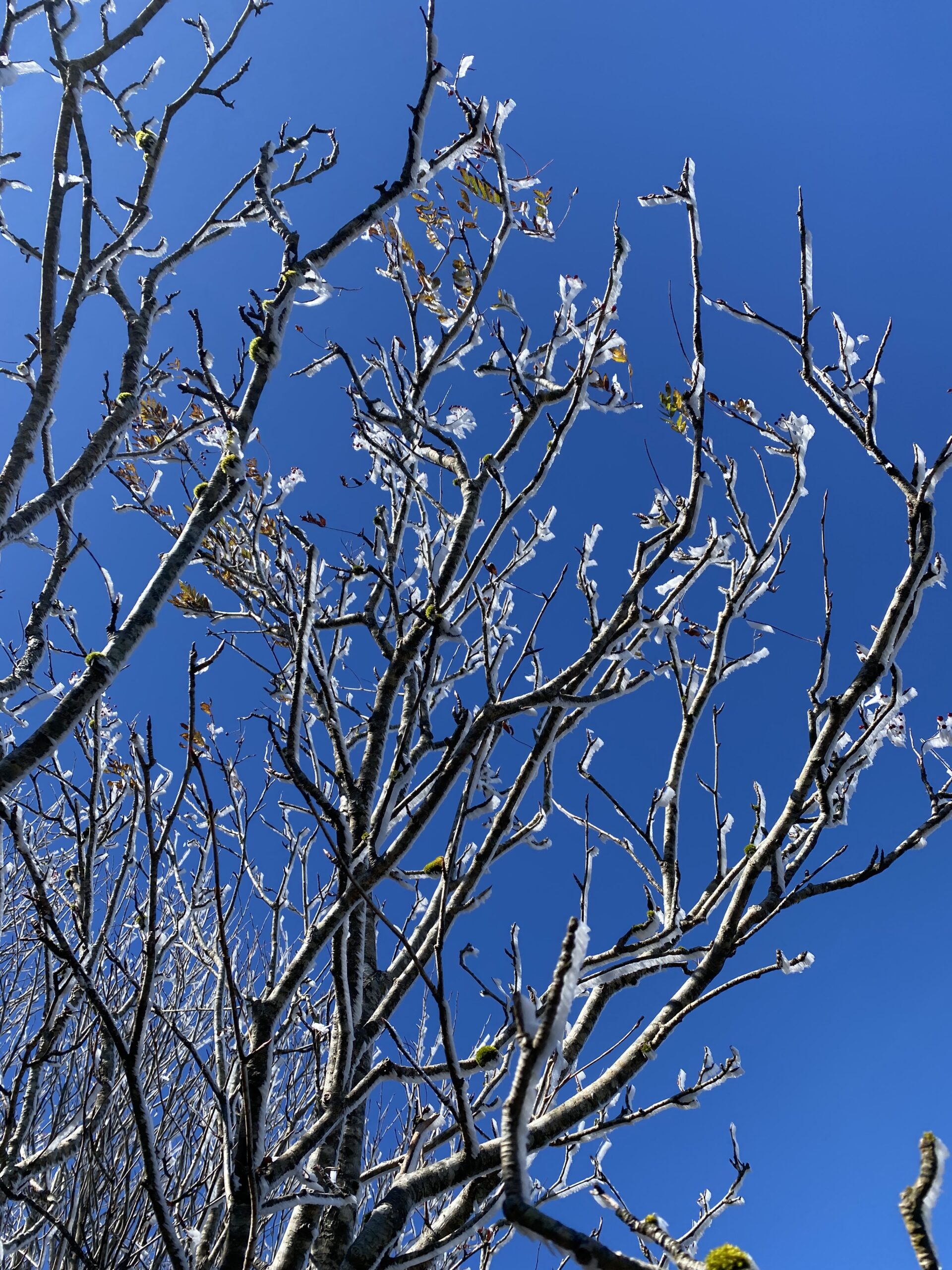 朝方は氷点下まで冷え込んだため、山頂付近にはお昼ごろまで霧氷が残っていました。